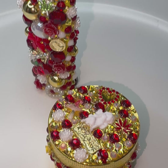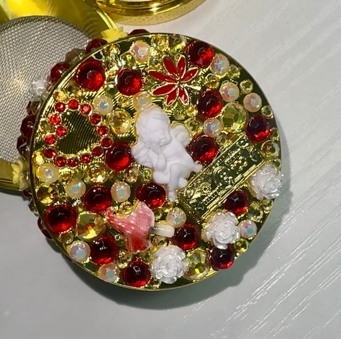 This gold grinder got the royal treatment 👑 — decked out in red, gold, and white charms. Super cute, super girly, with matching lighter.